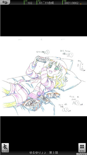 ・アプリならではの機能「アクションチェック」を搭載!原画をパラパラめくるような感覚で、アニメーションの動きがチェックできます。