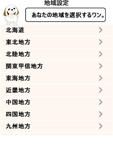 ※地域設定はいつでも「地域設定」より変更可能です。