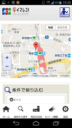 現在地付近のJCB加盟店情報を確認できるためお店選びや買い物に便利!