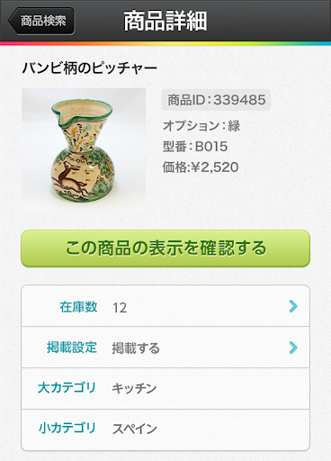 ・商品情報…商品ID、カテゴリー(大・小)、型番、商品名、オプション名、掲載設定、在庫数、価格、商品画像