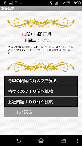 解答したすべての問題の詳しい解説が見られるので、間違った問題でも深く戦国時代の歴史を学ぶことができます。