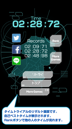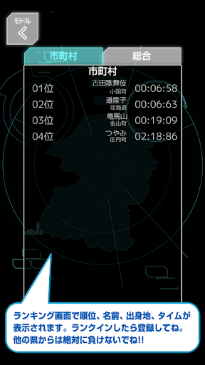 ・フリープレイ:全市町村から1問ずつ出題され、全問正解を目指す