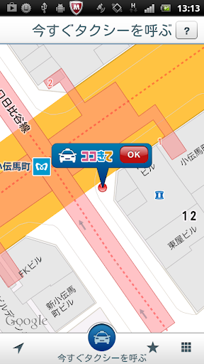 11.現在、スマートフォンの自動配車に対応していない会社については、お電話機能がついており、お迎え先を指定した直後に連絡先が表示され、スマートフォンから電話での配車注文に切り替ります。
