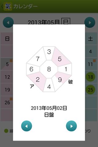 九星気学を基づいて本命星から見た日々の吉方位・凶方位を表示します。