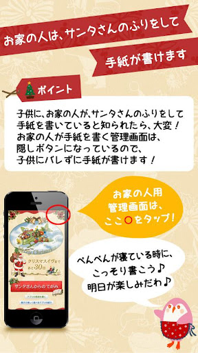 このアプリで、「サンタは、やっぱりいるんだ!」とお子様を笑顔にします。
