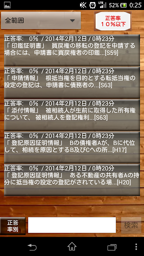 間違えた問題は、「REVIEW」のリストに追加され、正答率別、分野別でも表示できますので弱点強化にご活用ください。「REVIEW」リストに追加された問題は、再度ランダム出題時に正解した場合に、「REVIEW」リストから削除されていきます。