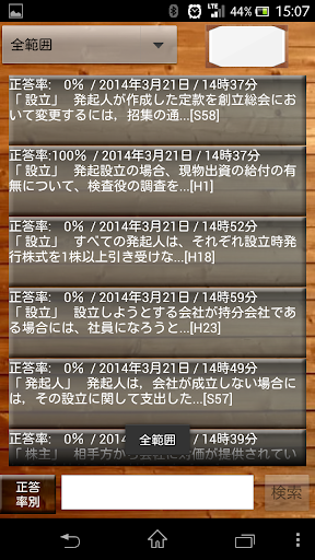 間違えた問題は、「REVIEW」のリストに追加され、正答率別、分野別でも表示できますので弱点強化にご活用ください。「REVIEW」リストに追加された問題は、再度ランダム出題時に正解した場合に、「REVIEW」リストから削除されていきます。