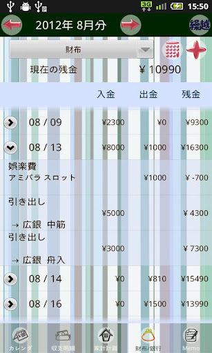 収支の管理や予定などを登録することが出来ます。