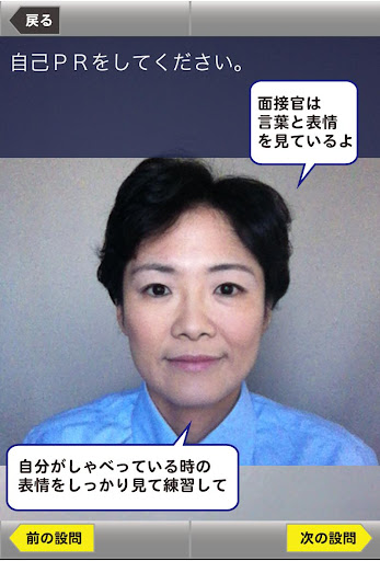 ・フロントカメラのない機種では、カメラを使った面接練習機能は使えません。