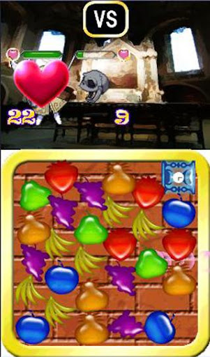 同じフルーツを3つ以上つなげれば君のモンスターが攻撃するぞ!
