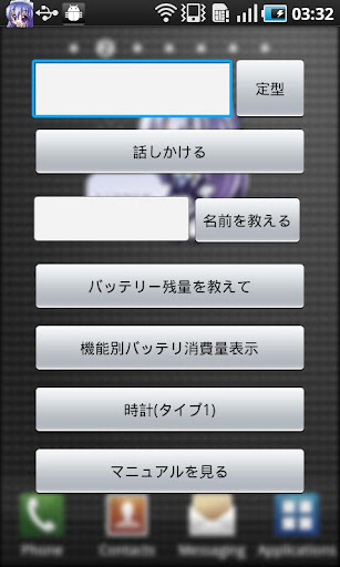 時計、バッテリチェック機能、簡単な会話機能があります。