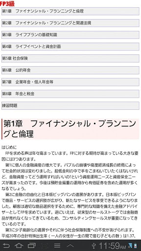 FP3級のアプリは、各級共に基本編・テキスト編・模試編あわせて全3アプリ6章の構成となっております。