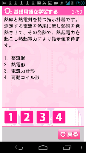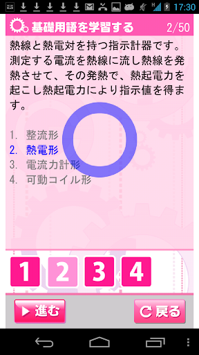 必要な基礎用語を選択問題として出題し、学習の基礎を身につけられます。