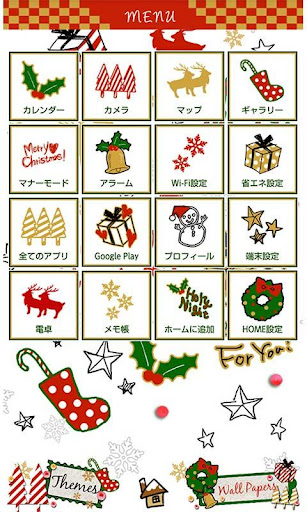クリスマス時期をハッピーに彩るキュートなアイテムを壁紙いっぱいに詰め込んだにぎやかなきせかえテーマ!