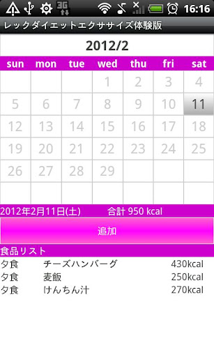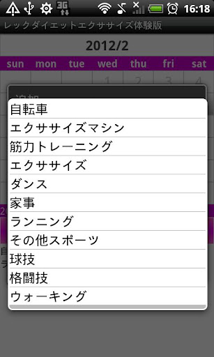 消費カロリーはあらかじめ用意されているリストから選択し、