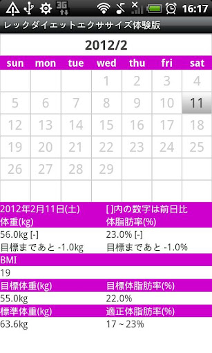 自分の年齢、身長などのデータを入力すれば標準体重や適正体脂肪率も分かります。