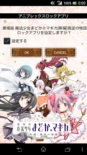 蒼樹うめ先生描き下ろしビジュアルを使用した、「劇場版 魔法少女まどか☆マギカ [新編] 叛逆の物語」のロック画面アプリです。鹿目まどか、暁美ほむら、巴マミ、美樹さやか、佐倉杏子に、「[新編]叛逆の物語」で登場した百江なぎさを加えた6人の魔法少女たちがランダムで表示されるので、スマホを使うのがより楽しみになるアプリです。