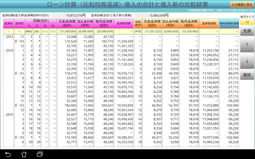 ・複数パターン(4つまで)の入力に対応し、入力した借入の合計と、新しい借入の比較が可能