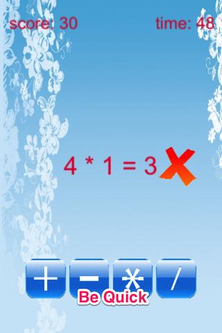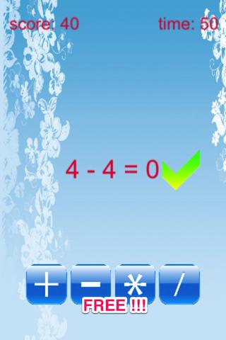 選擇合適的運營商的方程。您將獲得20點,如果你是對的,否則失去10點。你有60秒。