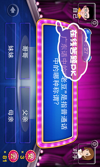 一站到底安卓版是一款手机答题类型的游戏,此版本是官方版,它形式新颖,趣味十足,又充满悬念的全新益智攻擂一站到底安卓版游戏支持人机对战,采用场上参与者分别单独厮杀的模式玩家可在挑战中发掘个性,让不同职业、社会标签的参与者在限定的时间内进行PK 游戏特色: 1.最绚丽的舞台效果,有身临现场挑战的幻觉 2.最动听的背景音乐 3.最紧张刺激的在线真人之间的智慧挑战 4.丰富的题库系统,具有8000多道题覆盖各个行业的常识 5.每周进行题库的更新,实时热点、娱乐新闻等各种行业的题库 6.集娱乐、益智、教育于一体的老少皆宜的益智答题游戏 下载提示: 1.pvp模式下,需要联网方可运行; 2.复活需要1元钱 一站到底安卓版2013-07-10上线 v2.6