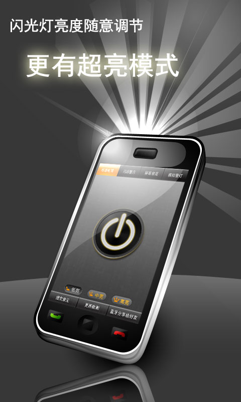 万能手电筒,在漆黑的夜里或比较黑暗的地方让您的手机一秒钟变成手电筒!!各大安卓市场手机达人装机必备工具!!潮人出门必备!!