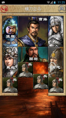 古老的中国游戏,以其变化多端、百玩不厌的特点与魔方、独立钻石棋一起被国外智力专家并称为“智力游戏界的三个不可思议”。它与七巧板、九连环等中国传统益智玩具还有个代名词叫作“中国的难题”。通过移动各个棋子,帮助曹操从初始位置移到棋盘最下方中部,从出口逃走。不允许跨越棋子,还要设法用最少的步数把曹操移到出口。曹操逃出华容道的最大障碍是关羽,关羽立马华容道,一夫当关,万夫莫开。关羽与曹操当然是解开这一游戏的关键。四个刘备军兵是最灵活的,也最容易对付,如何发挥他们的作用也要充分考虑周全。