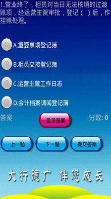 农行的三基本练习测试软件,主要可以单选题、多选题、判断题,模拟测试,记录成绩。