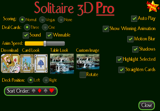 本游戏具有单次和累计积分、点击和拖动移动、自动翻牌以及无限制的还原功能。3D影像使得游戏生动形象,具有高观赏性和赢牌率。