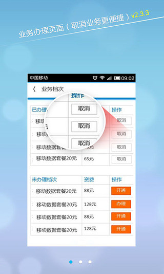 上海移动手机客户端是上海移动客户的自助服务软件,是您身边“7*24小时的移动营业厅”,可以随时满足您的移动业务查询和办理需求,独享的话费充值优惠,好玩有趣的有奖活动等您来参与!1、基本功能:话费查询、流量查询、资费查询、交费充值、积分查询兑换、业务办理及更换、历史账单等。2、其他功能:WLAN热点查询、归属地查询、营业厅查询、国际漫游资费、港澳台漫游资费、4G专区等。3、特色功能及活动:摇一摇、顶刮刮赢千元大奖活动、手机彩票等。更多精彩服务和活动期待您的体验!