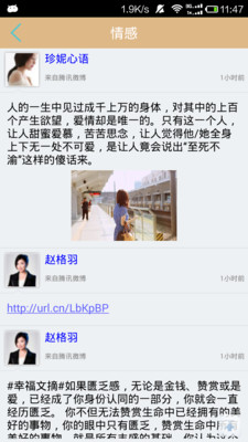 专一微博是一款提供各类或有趣的,或感悟的,或令人心旷神怡的信息阅读软件,是陪伴你度过或无聊的,或开心的,或不开心的时光的好伙伴。信息来自腾讯微博,腾讯微博将会保证信息的及时性,准确性。
