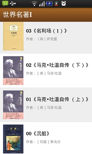 00《沉船》,01《马克.吐温自传》,03《名利场》,08《白痴(1)》,......