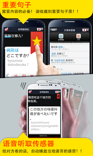现在,请抛弃过时的会话本,享受世界翻译机为您带来的前所未有的最佳旅行体验!