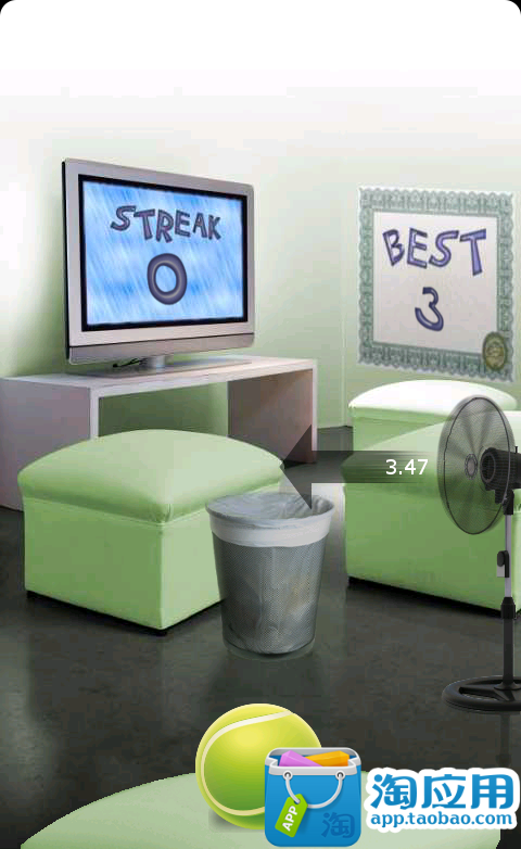 玩法介绍:网球投篮单击游戏,用手指控制网球扔出的方向,将一个网球扔到垃圾篓里,要考虑风向和距离的因素,在难度较高的关卡中纸篓或者罐子会移动,来挑战吧.