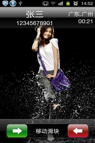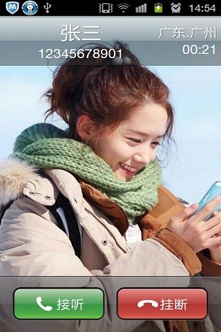 你还在用系统那单调暗沉的来电界面吗,你out到土咯~~本软件完全让你自定义来电界面,使用自己的照片当来电,还有丰富设置供你选择,完全的自定义来定界面,随心所欲!可滑动接听也可以按钮接听,适应不同人群;并有来电归属地提示,让你对来电信息一目了然。软件可设置来去电壁纸,来电信息字体大小,字体颜色,信息背景更是自由定义,可使用仿iphone来电背景,也可以自定义颜色和半透明度。内置两张壁纸,一张从360手机卫士那拿的,一张是iphone桌面原版壁纸,好看。同类软件有屏客来电秀,CC来电炫图,全屏来电大头贴,但本软件绝对这几个好用,因为本软件小,来电壁纸自由定义,还可以随机来电;真正全屏来电炫图,全屏来电通最新版本出炉啦。软件界面比qq2013还好!无法添加个性炫图的,请去下载使用“快图浏览”,这个软件好!(软件有拨打电话、读取联系人的权限,用于接电话、挂电话,和获取联系人姓名)