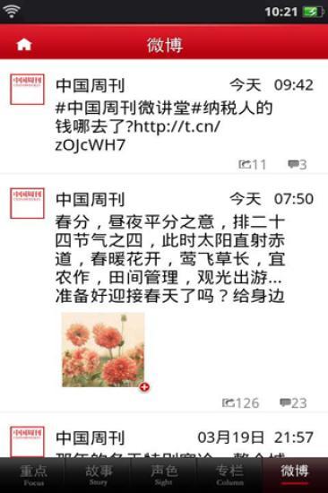 中国周刊手机客户端集中国周刊精彩杂志于一身,将精美图片、封面故事、人物专访等重点栏目整合发布,读者将免费阅读到中国周刊杂志最精彩的文章以及最新动态,让中国周刊与您越来越近