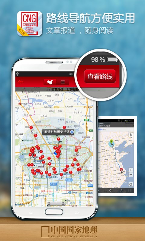 - 基于LBS技术的革新用户体验,聚合中国国家地理经典独家内容,领略不一样的周边。