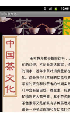 中国人饮茶,注重一个“品”字。“品茶”不但是鉴别茶的优劣,也带有神思遐想和领略饮茶情趣之意。在百忙之中泡上一壶浓茶,择雅静之处,自斟自饮,可以消除疲劳、涤烦益思、振奋精神,也可以细啜慢饮,达到美的享受,使精神世界升华到高尚的艺术境界。品茶的环境一般由建筑物、园林、摆设、茶具等因素组成。饮茶要求安静、清新、舒适、干净。中国园林世界闻名,山水风景更是不可胜数。利用园林或自然山水间,用木头做亭子、凳子,搭设茶室,给人一种诗情画意。供人们小憩,不由意趣盎然。 中国是文明古国,礼仪之邦,很重礼节。凡来了客人,沏茶、敬茶的礼仪是必不可少的。当有客来访,可征求意见,选用最合来客口味和最佳茶具待客。以茶敬客时,对茶叶适当拼配也是必要的。主人在陪伴客人饮茶时,要注意客人杯、壶中的茶水残留量,一般用茶杯泡茶,如已喝去一半,就要添加开水,随喝随添,使茶水浓度基本保持前后一致,水温适宜。在饮茶时也可适当佐以茶食、糖果、菜肴等,达到调节口味和点心之功效。 中国茶文化的内容主要是茶在中国精神文化中的体现,这比“茶风俗”、“茶道”的范畴深广的多,也是中国茶文化之所以与欧美或日本的茶文化的分别很大的原因。