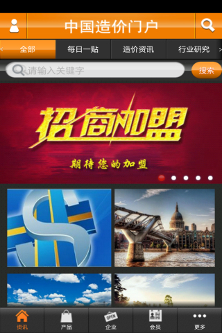 中国造价门户客户端是一款实用性信息平台,专门应用于交通运输、建筑市政等工程领域的综合性共享平台,集行业资讯、产品服务、造价商城、供求商机、企业黄页、微博登陆、微博分享、转播到腾讯微博、地图定位、一键拨打联系人电话、浏览关于我们联系人信息等功能于一体,中国造价门户客户端是以满足为企业和个人带来商机为出发点;是工程造价行业专业人士上网交流、沟通、合作双赢的首选平台。该客户端面向全国招商,各大企业可在该客户端上发布供求信息、发布广告、让各大企业以及广大客户获取资讯更为便捷。强大的应用功能,最新的造价资讯,丰富多样的电商平台,中国造价门户客户端,是您最佳的商业合作伙伴。