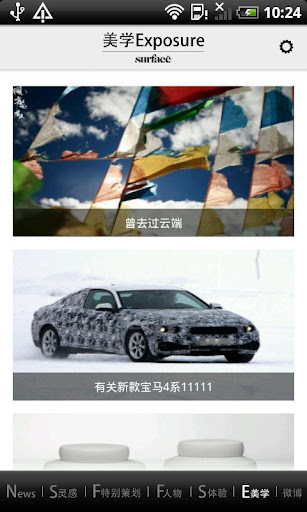 《中外生活广场surface》 Android客户端是专为Android智能移动平台系统量身定制的杂志阅读应用,分为News(与您分享最新的设计、创意资讯)Surveillance灵感(全球最新、最具创意、最具创造力的生活体验)、Feature特别策划(最具创造力生活话题,邀请各路创意人展开纸上的生活想象,精心打造独有的surface 式想象力)、Focus人物(力邀全球最具想象力艺术家讨论生活理念,分享创作灵感,带您感受最具影响力的创意人士的观点和态度)、Exposure美学(与国际一线团队携手,造极具视觉冲击力大片,在光与影的世界中探寻体验与激情,深度发掘创意美感)Surplus体验(以分享的角度体验美食、旅行、音乐等创意生活方式,以富有张力的图片让您感受一次饕餮的盛宴、一场心灵的旅行)六个模块。力图使您通过视觉阅读世界,借助创意体验人生。