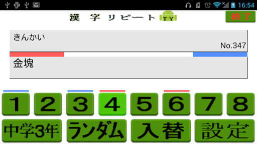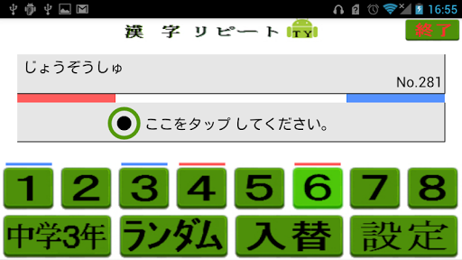 ● 8個の数字ボタンに割り当てられた漢字データを、タップして何度でも繰り返して学習できます。