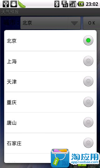 可以通过输入城市名称,汉子或者拼音,获得最近几天的天气预报 10月30日v.3.2.99版本更新 改善了背景图片上有多余的文字 11月29 美化了背景图片修正了获取当前位置的天气的bug 1月6日 修改背景音乐