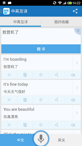 1.本软件采用百度翻译结合科大讯飞的语音功能,让中英文互译变得省时给力,如此方便快捷,无需繁琐的手动输入,说就可以了,时时给你惊喜,成为当之无愧的中英文学习利器。