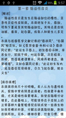 中西医结合皮肤科笔记涉及到脂溢性皮炎、寻常痤疮、酒渣鼻、斑秃、神经性皮炎、脓疱性银屑病、尖锐湿疣、湿疹、荨麻疹、药疹、接触性皮炎等常见皮肤病的内容讲解,以章节的形式展示,方便学着查阅记忆。