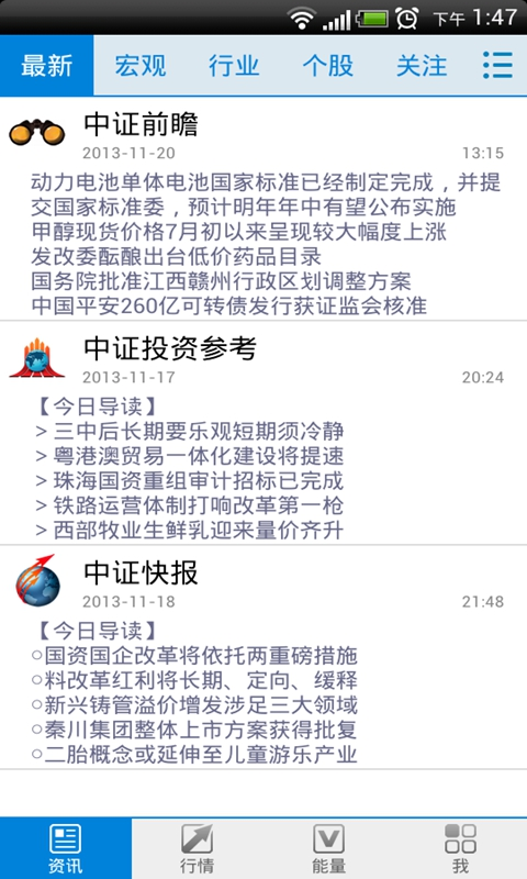 “中证资讯”是中国证券报为广大投资者精心打造的一款财经资讯手机客户端。借助中证报总部及各地记者站资源及人脉优势,“中证资讯”移动客户端每日第一时间为投资者推送研究员精心筛选的权威、及时、精准的证券投资信息,务求“帮投资者找到更好的选择”。