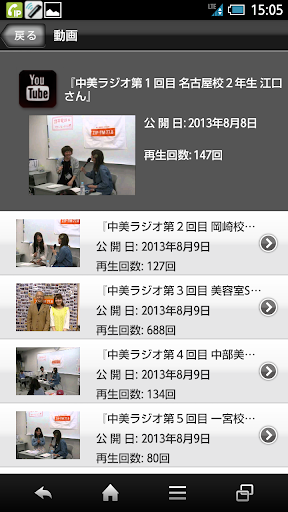 ・イベントや授業風景等の写真の閲覧 ・学校ブログ「中美ライフ」の閲覧 ・学校のYoutube動画が配信次第視聴可能