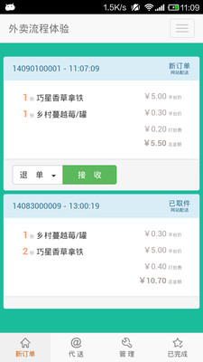 由为邻外卖为合作商户提供的实时接收、处理订单,上下架商品功能及请求专业配送团队辅助配送等功能。