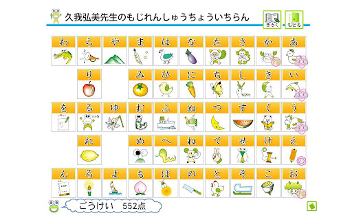 「もじれんしゅうちょう」として特許取得された久我弘美先生のアドバイスの元、ほぼそのままの感覚で使えるようAndroidへ移植しました。
