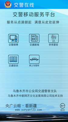 “乌鲁木齐交警”是由乌鲁木齐公安局交警支队联合乌鲁木齐中新网艺文化发展有限公司开发的基于无线网络手机信息服务应用软件。