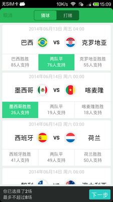 大家可以通过乐猜对世界杯赛事进行预测,和好友打赌。