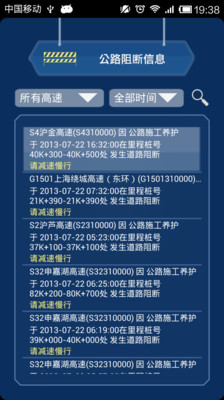 可以查询上海地区每条高速公路的阻断信息,以便及时安排行车路线。